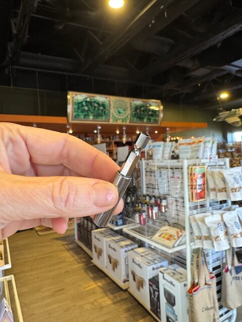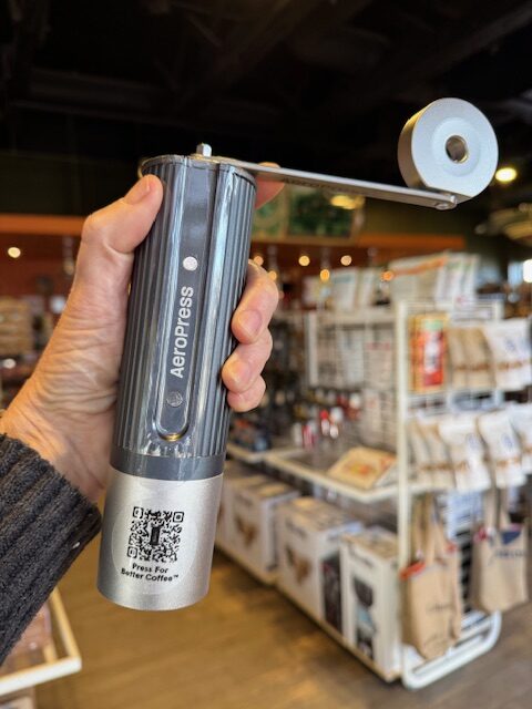 The AeroPress Manual Coffee Grinder goes perfectly with all AeroPress brewers. Slim and sleek, and powerful enough to easily grind your coffee as you need it. This features Italian-made titanium coated burrs that have a lifetime warranty. The body is 100% metal with a 1 year warranty. Includes a Easy-Grind ergonomic handle with dual bearings for fast, smooth grinding.