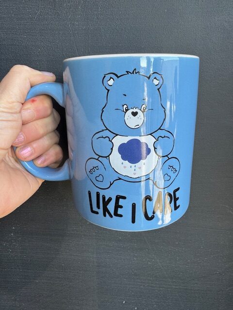 The Care Bears Grumpy Bear Mug makes a great gift for fans of this sweet vintage cartoon. Featuring the funny blue Bear with his ‘Like I Care’ attitude, this lovely mug holds 20 oz. of your favourite Cupper’s coffee. Start your day out right, declaring your intentions from the first sip!