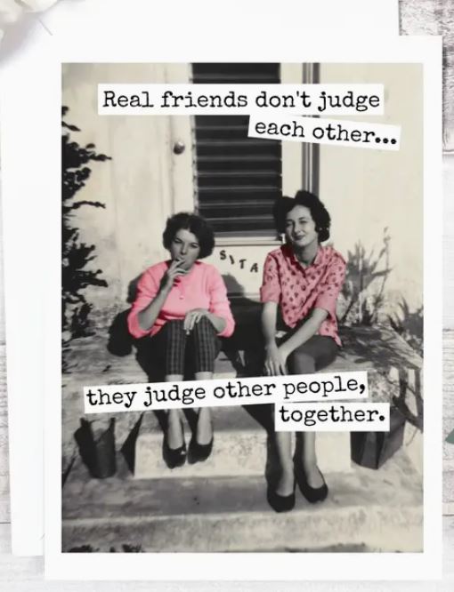 The ‘Real Friends Don’t Judge’ Card goes to that special friend. You know, the one that you can share all the latest and greatest gossip with. Best of all, you know it’s not going any further than their ear!