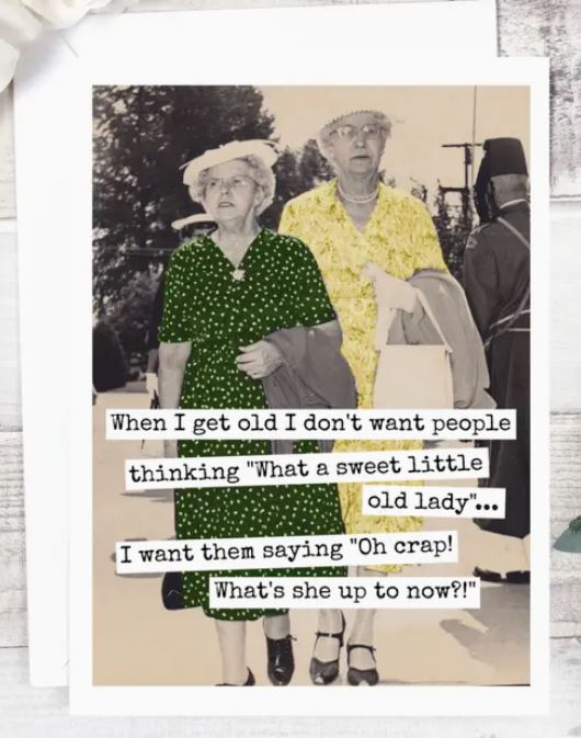 The ‘When I Get Old’ Birthday Card simply states the desire to avoid boring. Live life to the fullest and make your kids and grandkids chase you!