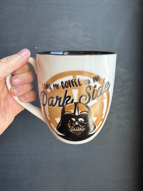 The Star Wars Darth Vader Dark Side Mug makes a special gift for fans of the classic movies. The mug states it clearly… no cream or sugar needed in this coffee! Who says the dark side is all bad…?