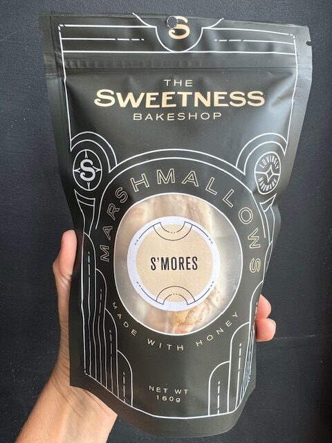 These S’Mores Marshmallows by Sweetness Bakeshop are everything you’ve ever dreamed of in a marshmallow. This fun taste sensation is flavourful, dense but light, and sweet without being cloying. Each marshmallow is the perfect size for making into a S’more, to use for baking, or just popping in your mouth. You’ll love them over a campfire, or melting in your hot chocolate.