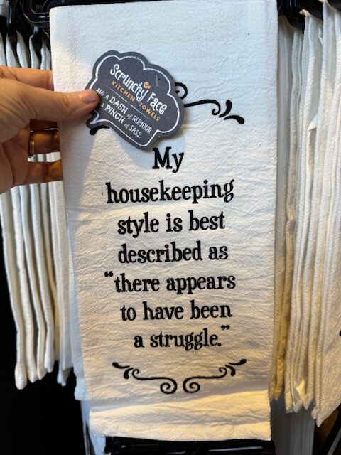 Scrunchy Face doesn’t take life too seriously. One look at their flour sack tea towels and you have no choice but to agree. As with this towel – “My housekeeping style is best described as ‘There appears to have been a struggle.'” With funny quips and far-too-accurate zingers, you’ll find a towel here perfect for any kitchen.